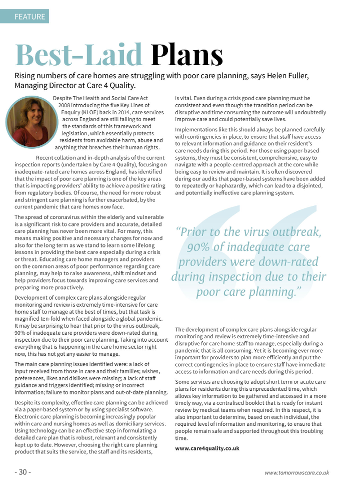 Care 4 Quality – Tomorrows Care Article April/May – Care Planning