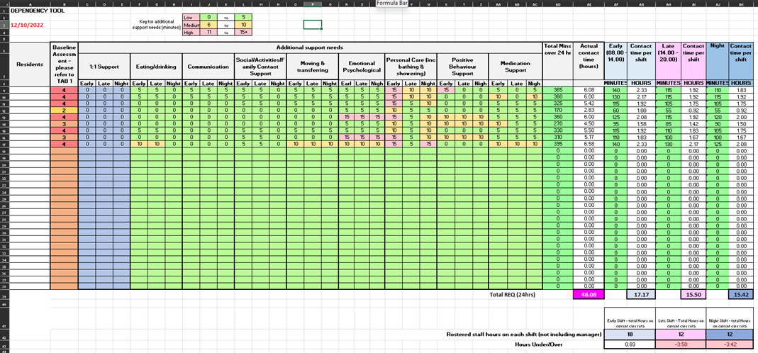This dependency calculator helps you to evidence and focus on the first element of safe staffing: having sufficient numbers of suitably qualified, competent, skilled and experienced persons deployed in order to meet the requirements of the home. It will provide you with a staffing calculation to enable you to staff your service safely.